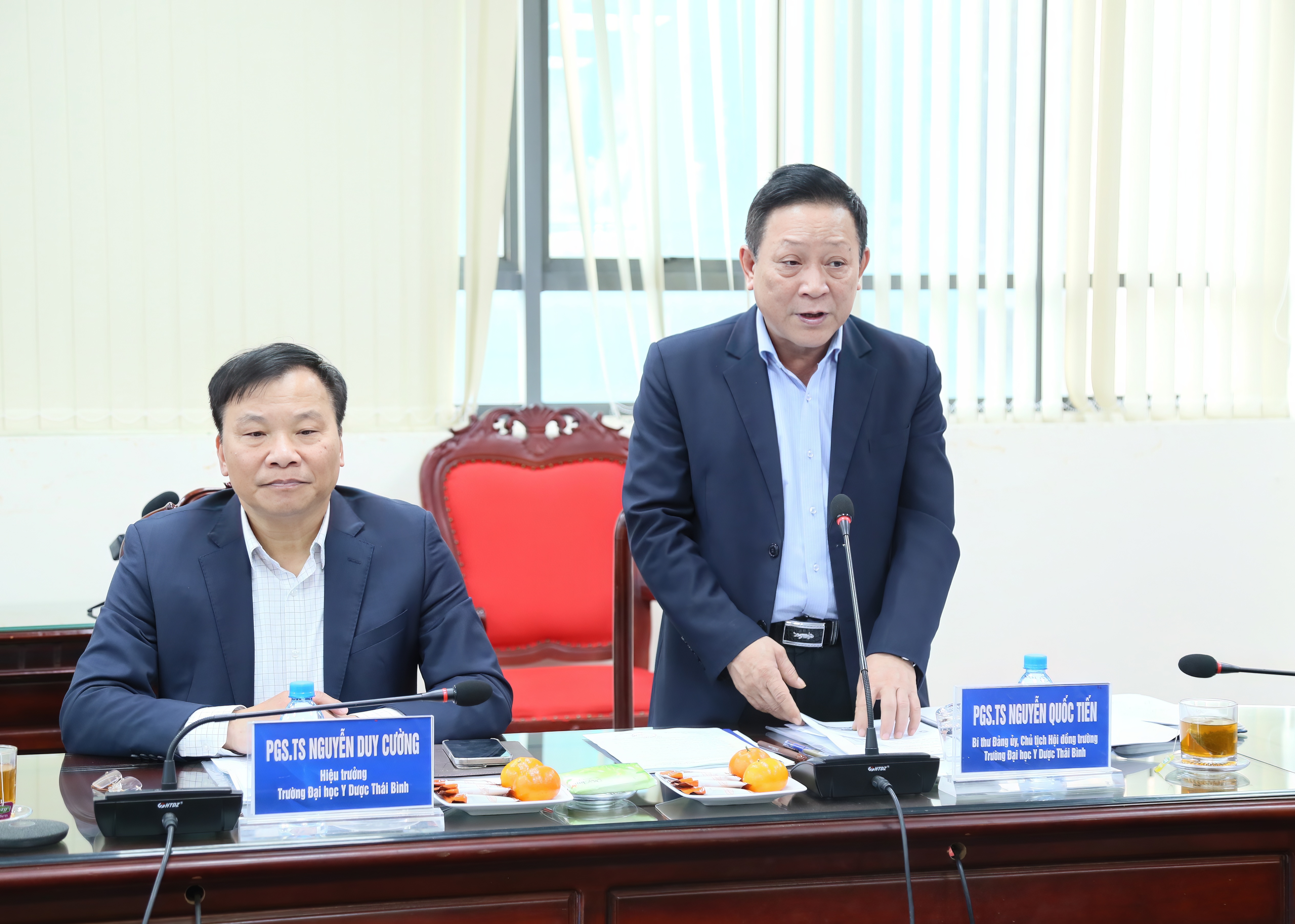 23/12/2025 | lượt xem: 318 Đồng chí Phó Bí thư VV88 casino, Chủ tịch UBND tỉnh Phạm Quang Ngọc làm việc với một số cơ sở giáo dục, y tế trên địa bàn tỉnh Chiều ngày 23/12, đồng chí Phạm Quang Ngọc, Phó Bí thư VV88 casino, Chủ tịch UBND tỉnh đã đi khảo sát và làm việc với Trường THPT Chuyên Thái Bình, Bệnh viện Đa khoa Thái Bình và Trường Đại học Y Dược Thái Bình. Các đại biểu dự buổi làm việc với Trường THPT Chuyên Thái Bình. Cùng dự đi khảo sát và dự làm việc có các đồng chí: Phạm Đồng Thụy, Ủy viên Ban Thường vụ VV88 casino, Giám đốc Sở Giáo dục và Đào tạo; Phạm Văn Nghiêm, VV88 casino viên, Phó Chủ tịch UBND tỉnh; lãnh đạo các sở, ngành liên quan. Đồng chí Phạm Đồng Thụy, Ủy viên Ban Thường vụ VV88 casino, Giám đốc Sở Giáo dục và Đào tạo phát biểu tại buổi làm việc với Trường THPT Chuyên Thái Bình. Đồng chí Phạm Văn Nghiêm, VV88 casino viên, Phó Chủ tịch UBND tỉnh phát biểu tại buổi làm việc với Trường THPT Chuyên Thái Bình. Lãnh đạo Văn phòng UBND tỉnh phát biểu tại buổi làm việc với Trường THPT Chuyên Thái Bình. Theo báo cáo của Trường THPT Chuyên Thái Bình, hiện nay nhà trường có trên 1.500 học sinh, hơn 100 VV88 dự đoán xổ số ba miền siêu chính xác, giáo viên. Những năm qua, nhà trường luôn chú trọng đổi mới phương pháp dạy và học, nâng cao chất lượng giáo dục toàn diện; học sinh đạt nhiều giải cao tại các kỳ thi học sinh giỏi quốc tế và trong nước. Riêng năm học 2024 - 2025, có 73 học sinh dự thi quốc gia, trong đó 52 em đạt giải. Cơ sở vật chất của nhà trường cơ bản đồng bộ, đáp ứng yêu cầu dạy và học; khu ký túc xá hiện tiếp nhận khoảng 300 học sinh, phần lớn chi phí ăn ở, sinh hoạt hằng ngày được nhà trường hỗ trợ. Nhà trường kiến nghị tỉnh quan tâm sửa chữa, bổ sung trang thiết bị dạy học; tiếp tục có cơ chế, chính sách hỗ trợ VV88 dự đoán xổ số ba miền siêu chính xác, giáo viên và học sinh, nhất là các chính sách đặc thù nhằm thu hút, bồi dưỡng học sinh giỏi. Đồng chí Phó Bí thư VV88 casino, Chủ tịch UBND tỉnh Phạm Quang Ngọc phát biểu chỉ đạo tại buổi làm việc với Trường THPT Chuyên Thái Bình. Phát biểu tại buổi làm việc với nhà trường, đồng chí Phó Bí thư VV88 casino, Chủ tịch UBND tỉnh khẳng định Trường THPT Chuyên Thái Bình là niềm tự hào của tỉnh, có bề dày truyền thống và nhiều đóng góp cho sự nghiệp giáo dục. Đồng chí ghi nhận, chúc mừng và biểu dương những thành tích nổi bật của thầy và trò nhà trường trong những năm học vừa qua. Đồng chí nhấn mạnh để thực hiện tốt chiến lược giáo dục mũi nhọn, giáo dục toàn diện trong giai đoạn tới, Trường THPT Chuyên Thái Bình cần tiếp tục đổi mới, đột phá tư duy, cách làm trong quản lý và hoạt động giảng dạy với mục tiêu lấy học sinh làm trung tâm, trong đó mọi chủ trương, chương trình, phương pháp giảng dạy và tổ chức các hoạt động của nhà trường đều phải hướng tới sự phát triển toàn diện của học sinh. Học sinh không chỉ được trang bị kiến thức văn hóa vững chắc mà còn được rèn luyện kỹ năng, tư duy sáng tạo, năng lực tự học, khả năng thích ứng và bản lĩnh hội nhập; gắn học tập trên lớp với hoạt động trải nghiệm, ngoại khóa, nghiên cứu khoa học và giáo dục giá trị sống. Bên cạnh đó, nhà trường cũng cần chủ động nhận diện khó khăn, tìm giải pháp nâng cao chất lượng dạy và học, xứng đáng là trường mũi nhọn của tỉnh; đồng thời cần tham mưu với tỉnh có cơ chế, chính sách xứng tầm, quy trình tuyển dụng công tâm, khách quan để thu hút, lựa chọn đội ngũ giáo viên có năng lực thực sự. Về trước mắt, đồng chí Phó Bí thư VV88 casino, Chủ tịch UBND tỉnh giao Sở Xây dựng, Sở Giáo dục và Đào tạo phối hợp với nhà trường và các đơn vị liên quan tập trung cải tạo, sửa chữa, nâng cấp cơ sở vật chất; bổ sung phòng học và thiết bị dạy học; xây dựng cảnh quan, kiến trúc xanh - sạch - đẹp; đẩy mạnh xây dựng trường học thông minh, ứng dụng khoa học công nghệ, chuyển đổi số. Từ đó từng bước xây dựng VV88 app tải về giáo dục “chuẩn của chuẩn, mẫu của mẫu” trong toàn ngành. Cùng với xây dựng VV88 app tải về học tập tốt nhất cho học sinh, đồng chí cũng lưu ý nhà trường quan tâm cải tạo ký túc xá bảo đảm điều kiện ăn ở vệ sinh, an toàn cho học sinh. Đồng chí Phó Bí thư VV88 casino, Chủ tịch UBND tỉnh Phạm Quang Ngọc cùng các đồng chí lãnh đạo tỉnh khảo sát cơ sở vật chất của Trường THPT Chuyên Thái Bình. *Cũng trong chiều 23/12, đồng chí Phó Bí thư VV88 casino, Chủ tịch UBND tỉnh cùng đoàn đã có buổi làm việc với Trường Đại học Y Dược Thái Bình về quy hoạch xây dựng và định hướng phát triển giai đoạn 2026 - 2030, tầm nhìn định hướng đến năm 2045; nghe Ban Quản lý dự án đầu tư xây dựng số 2 báo cáo tiến độ triển khai dự án xây dựng Bệnh viện 