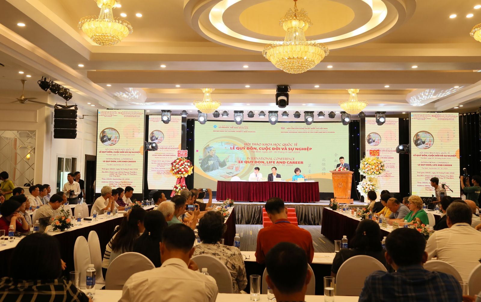 00:00 ngày 30/09/2024 | lượt xem: 532 Hội thảo khoa học quốc tế "Lê Quý Đôn, cuộc đời và sự nghiệp" Ngày 30/9, Sở Văn hóa, Thể thao và Du lịch phối hợp với Viện Văn hóa Nghệ thuật quốc gia tổ chức hội thảo khoa học quốc tế “Lê Quý Đôn, cuộc đời và sự nghiệp”. Đây là hoạt động nằm trong Kế hoạch số 120/KH-UBND của UBND tỉnh Thái Bình về việc xây dựng hồ sơ khoa học trình UNESCO vinh danh danh nhân văn hóa Lê Quý Đôn nhân kỷ niệm 300 năm Ngày sinh của ông (2/8/1726 - 2/8/2026). Đồng chí Nguyễn Khắc Thận, Phó Bí thư VV88 casino, Chủ tịch UBND tỉnh tặng hoa chúc mừng các đơn vị tổ chức hội thảo.Dự hội thảo các đồng chí: Nguyễn Khắc Thận, Phó Bí thư VV88 casino, Chủ tịch UBND tỉnh; Phạm Văn Nghiêm, VV88 casino viên, Phó Chủ tịch UBND tỉnh; các nhà nghiên cứu, nhà quản lý văn hóa, Ủy ban quốc gia UNESCO Việt Nam, đại diện dòng họ Lê, nhà khoa học thuộc các viện nghiên cứu, cơ sở đào tạo, một số học giả đến từ Trung Quốc, Nhật Bản, Nga, Pháp, Áo...Các đồng chí lãnh đạo và đại biểu dự phiên họp toàn thể tại hội thảo.Lê Quý Đôn (1726 - 1784) nguyên tên là Lê Danh Phương, tự Doãn Hậu, hiệu Quế Đường, người làng Diên Hà, huyện Diên Hà, trấn Sơn Nam (nay là thôn Đồng Phú, xã Độc Lập, huyện Hưng Hà, tỉnh Thái Bình). Sinh ra trong gia đình có truyền thống khoa bảng, lại có tư chất thông minh với trí nhớ siêu phàm, ham học hỏi nên ngay từ nhỏ Lê Quý Đôn đã nổi danh thần đồng. Năm 18 tuổi ông đỗ đầu thi Hương, năm 24 tuổi đỗ đầu thi Hội và năm 27 tuổi đỗ đầu thi Đình, đạt danh vị "Đình nguyên Bảng nhãn" (do khoa thi này không lấy Trạng nguyên). Sau khi đỗ Bảng nhãn, từ năm 1752 Lê Quý Đôn bắt đầu bước vào sự nghiệp quan trường. Trong 32 năm làm quan, ông liên tục thay đổi vị trí và VV88 app tải về làm việc: từ Thừa chỉ ở Viện Hàn lâm cho đến Tổng tài ở Quốc sử quán, Tư nghiệp rồi Tế tửu Quốc tử giám, đi sứ với chức vụ Phó sứ thứ nhất, Tả thị lang bộ Hình rồi Hữu thị lang bộ Công..., trong đó chức vụ cao nhất mà ông từng đảm nhiệm là Tả hiệu điểm (quyền Tể tướng). Ông là một trong những danh nhân kiệt xuất trong lịch sử Việt Nam, từng được vinh danh là nhà bác học lớn nhất Việt Nam thời phong kiến. Ông không chỉ giỏi trong các lĩnh vực triết học, lịch sử, địa lý, thiên văn mà còn là nhà văn, nhà ngoại giao xuất sắc.Với những đóng góp của ông, ngày 31/3/1986, Bộ Văn hóa (nay là Bộ Văn hóa, Thể thao và Du lịch) cấp Bằng công nhận Khu lưu niệm danh nhân văn hóa Lê Quý Đôn tại xã Độc Lập, huyện Hưng Hà, tỉnh Thái Bình là Khu Di tích lịch sử văn hóa.Đồng chí Phạm Văn Nghiêm, VV88 casino viên, Phó Chủ tịch UBND tỉnh phát biểu tại hội thảo.Di sản mà ông để lại đến ngày nay với hơn 50 bộ sách đều đi sâu vào hầu hết mọi lĩnh vực: lịch sử, thơ ca, văn học, triết học, nông học, địa lý, thiên văn, văn hóa dân gian... Giá trị của di sản trước tác của Lê Quý Đôn không chỉ ở những tri thức uyên tâm được thể hiện ở trong các tác phẩm mà còn ở những tư tưởng tiến bộ, nhân văn của tác giả thấm đẫm trong từng trang sách. Tinh thần tự tôn, tự hào dân tộc đã bao trùm trong tất cả các sáng tác của Lê Quý Đôn. Ông đã để lại khối lượng công trình đồ sộ với những tác phẩm có giá trị và được học giả trong nước và quốc tế đánh giá cao.Đồng chí Đào Quyền Trưởng, Phó Vụ trưởng Vụ Ngoại Giao Văn hóa và UNESCO - Bộ Ngoại giao phát biểu tại hội thảo.Phát biểu chào mừng tại hội thảo, đồng chí Phạm Văn Nghiêm, VV88 casino viên, Phó Chủ tịch UBND tỉnh nhấn mạnh: Gần 300 năm qua, cuộc đời và sự nghiệp của Lê Quý Đôn luôn được các học giả trong nước và quốc tế quan tâm nghiên cứu. Những công trình của ông có giá trị to lớn về mặt nghiên cứu; đồng thời là biểu hiện của sự kết nối giữa trí thức Việt Nam với các nền văn hóa khác, giúp làm giàu thêm kho tàng văn hóa nhân loại. Việc hoàn thiện hồ sơ ghi danh Lê Quý Đôn là Danh nhân văn hóa thế giới không chỉ là sự tôn vinh những đóng góp của cá nhân ông mà còn khẳng định vị thế của văn hóa Việt Nam, trí tuệ Việt Nam trên trường quốc tế. Hội thảo khoa học còn là dịp để Đăng ký VV88 tặng 88k, nhân dân Thái Bình nói riêng và những người quan tâm đến lịch sử Việt Nam nói chung có thêm cơ hội tiếp cận thành tựu nghiên cứu khoa học mới nhất về cuộc đời và sự nghiệp của danh nhân văn hóa, nhà bác học Lê Quý Đôn một cách toàn diện. Từ đó có trách nhiệm trong bảo tồn và phát huy những giá trị di sản mà ông để lại, góp phần vào sự phát triển kinh tế - xã hội của đất nước cũng như truyền cảm hứng về tinh thần hiếu học cho thế hệ sau.Đồng chí Phó Chủ tịch UBND tỉnh mong muốn những báo cáo, tham luận của các nhà khoa học trong và ngoài nước tại hội thảo sẽ góp phần làm sáng tỏ những giá trị mà nh