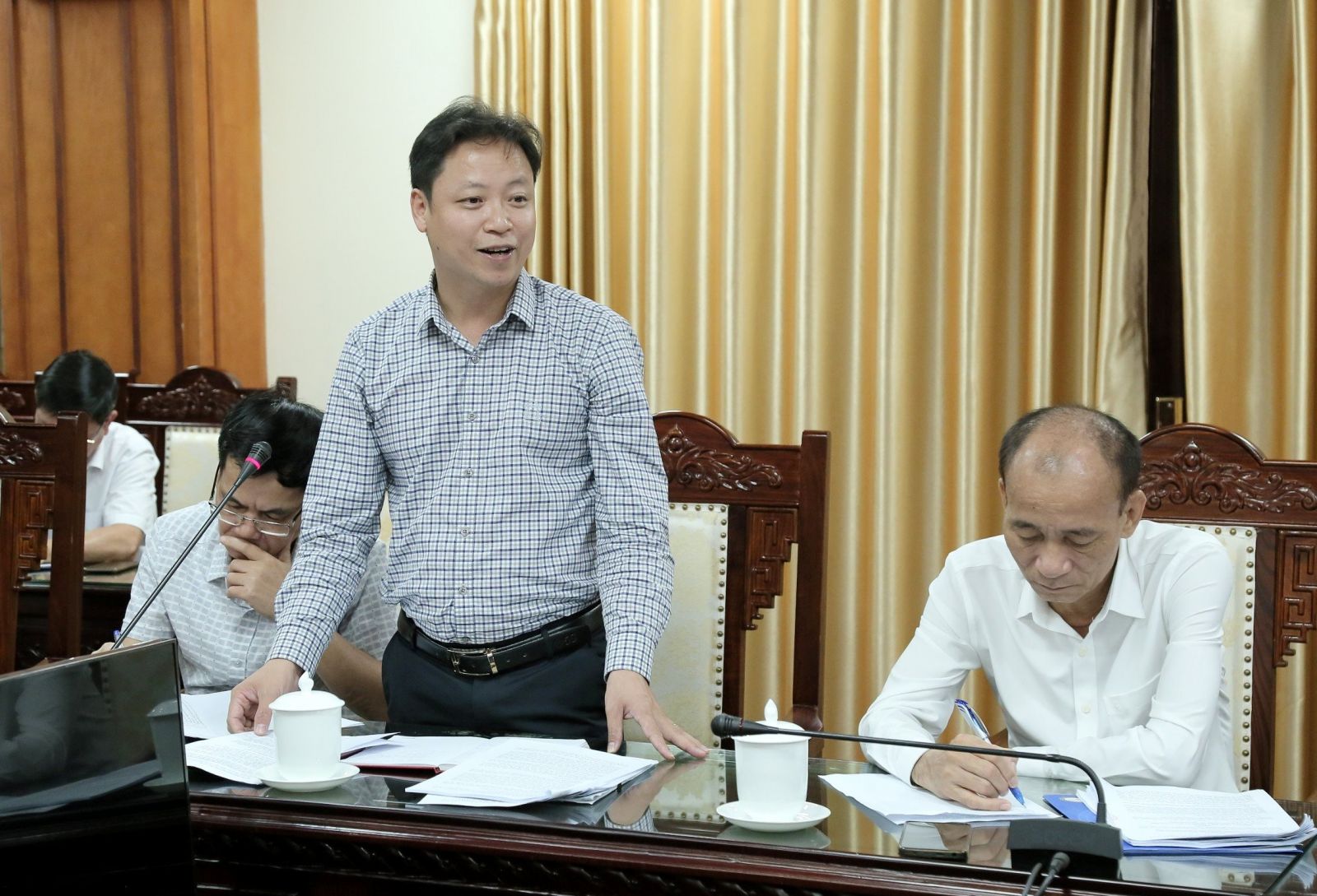 00:00 ngày 17/04/2024 | lượt xem: 370 Họp Hội đồng quản lý Quỹ Đầu tư phát triển và Quỹ Phát triển đất tỉnh Sáng ngày 17/4, UBND tỉnh tổ chức cuộc họp nghe Hội đồng quản lý Quỹ Đầu tư phát triển tỉnh và Quỹ Phát triển đất tỉnh báo cáo kết quả hoạt động quý 1 và phương hướng, nhiệm vụ quý 2/2024. Đồng chí Nguyễn Quang Hưng, Ủy viên Ban Thường vụ VV88 casino, Phó Chủ tịch thường trực UBND tỉnh, Chủ tịch Hội đồng quản lý Quỹ Đầu tư phát triển tỉnh và Quỹ Phát triển đất tỉnh chủ trì cuộc họp.Đồng chí Nguyễn Quang Hưng, Ủy viên Ban Thường vụ VV88 casino, Phó Chủ tịch thường trực UBND tỉnh, Chủ tịch Hội đồng quản lý Quỹ Đầu tư phát triển tỉnh và Quỹ Phát triển đất tỉnh phát biểu tại cuộc họp.Trong quý 1, Quỹ Đầu tư phát triển tỉnh giải ngân được hơn 6 tỷ đồng cho 2 dự án vay vốn. Ngoài ra, Quỹ đã đôn đốc thu hồi nợ vay được gần 11 tỷ đồng. Tổng dư nợ cho vay của Quỹ đến ngày 31/3/2024 hơn 27,1 tỷ đồng/tổng số quyết định cho vay hơn 43,8 tỷ đồng, đạt gần 62%. Cơ quan điều hành Quỹ Phát triển đất tỉnh và đơn vị nhận ủy thác đã tích cực đôn đốc thu hồi vốn vốn ứng của 2 dự án với tổng số tiền hơn 8,1 tỷ đồng. Từ đó đã cân đối, tham mưu Hội đồng quản lý Quỹ ban hành quyết định ứng vốn cho UBND huyện Tiền Hải để thực hiện giải phóng mặt bằng 1 dự án với số tiền hơn 4,2 tỷ đồng. Các thành viên Quỹ Đầu tư phát triển tỉnh, Quỹ Phát triển đất tỉnh phát biểu tại cuộc họp.Tại cuộc họp, đại diện Quỹ Đầu tư phát triển tỉnh báo cáo các tờ trình về việc: phê duyệt quyết toán chênh lệch thu chi và trích lập các quỹ năm 2023 của Quỹ Đầu tư phát triển; phê duyệt báo cáo xếp loại kết quả hoạt động năm 2023 của Quỹ Đầu tư phát triển; phê duyệt quyết toán thu chi thường xuyên năm 2023 của Quỹ Phát triển đất.Phát biểu kết luận, đồng chí Phó Chủ tịch thường trực UBND tỉnh, Chủ tịch Hội đồng quản lý Quỹ Đầu tư phát triển tỉnh và Quỹ Phát triển đất tỉnh đề nghị hai quỹ bám sát nhiệm vụ của tỉnh, chủ động khắc phục khó khăn để thực hiện tốt các nhiệm vụ, kế hoạch đã đề ra cũng như những chỉ đạo của UBND tỉnh. Trên cơ sở kết quả báo cáo của Quỹ Đầu tư phát triển tỉnh và Quỹ Phát triển đất tỉnh, đồng chí thống nhất thông qua kết quả kinh doanh và trích lập các quỹ năm 2023 của Quỹ Đầu tư phát triển và Quỹ Phát triển đất tỉnh; đồng thời thống nhất xếp loại A năm 2023 đối Quỹ Đầu tư phát triển tỉnh. Về nhiệm vụ quý 2/2024, đồng chí Phó Chủ tịch thường trực UBND tỉnh, Chủ tịch Hội đồng quản lý Quỹ Đầu tư phát triển tỉnh và Quỹ Phát triển đất tỉnh đề nghị Quỹ Đầu tư phát triển tỉnh tiếp tục đôn đốc thu hồi vốn ứng đối với các dự án ứng vốn đã đến hạn hoàn trả; thực hiện đôn đốc thu hồi các khoản nợ đến hạn đối với các dự án ODA, dự án RE2 và dự án nước sạch nông thôn. Cơ quan quản lý Quỹ phối hợp với các sở, ngành liên quan nghiên cứu phương án thu hồi dứt điểm tiền tạm ứng xi măng. Tích cực tìm kiếm dự án cho vay theo danh mục, lĩnh vực đầu tư và cho vay, trong đó quan tâm tới các dự án nhà ở xã hội, bảo đảm vượt tỷ lệ giá trị dư nợ cho vay trên vốn chủ sở hữu theo quy định. Đối với Quỹ Phát triển đất tỉnh, đồng chí Phó Chủ tịch thường trực UBND tỉnh, Chủ tịch Hội đồng quản lý Quỹ Đầu tư phát triển tỉnh và Quỹ Phát triển đất tỉnh yêu cầu rà soát các dự án ứng vốn đã đến hạn để đôn đốc thu hồi vốn, kiên quyết không cho vay các khoản tiếp theo đối với các đơn vị chưa hoàn trả vốn ứng đã đến kỳ hạn thanh toán trước đó. Đối với các đơn vị có khoản vốn ứng lớn, Quỹ khẩn trương đôn đốc thu hồi khi nguồn vốn đầu tư đã được bố trí. Tiếp tục làm tốt công tác quản lý Quỹ bảo đảm chặt chẽ, đúng nguyên tắc, đúng quy định của pháp luật. Tác giả: T.Đạt