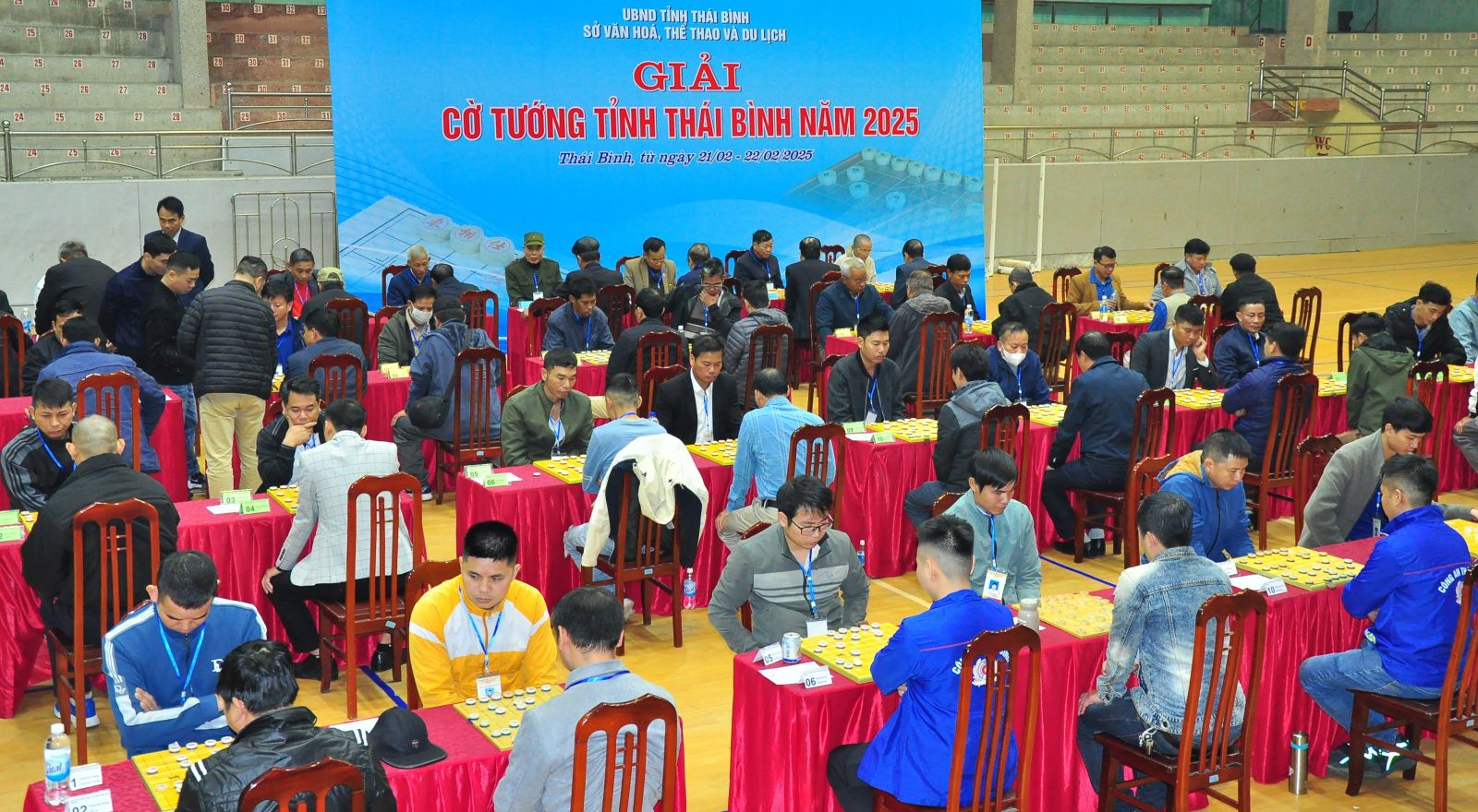 21/02/2025 | lượt xem: 315 Khai mạc giải cờ tướng tỉnh Thái Bình năm 2025 Sáng ngày 21/2, Sở Văn hóa, Thể thao và Du lịch tổ chức khai mạc giải cờ tướng tỉnh Thái Bình năm 2025. Ban tổ chức tặng hoa cho trọng tài và trao Cờ lưu niệm cho các đơn vị tham gia giải.Giải cờ tướng tỉnh Thái Bình năm 2025 thu hút gần 100 kỳ thủ đến từ 08 huyện, thành phố và 02 đơn vị, câu lạc bộ trên địa bàn tỉnh tham gia thi đấu ở 4 nhóm lứa tuổi: dưới 40 tuổi; 41 - 50 tuổi; 51 - 60 tuổi; 61 tuổi trở lên. Tranh tài theo thể thức thi đấu hệ Thụy sỹ, dựa trên tổng số điểm của mỗi kỳ thủ qua các trận đấu để tính thành tích cá nhân và toàn đoàn.Thông qua giải, nhằm tạo sân chơi lành mạnh, bổ ích, thúc đẩy tăng cường giao lưu học hỏi kỳ nghệ giữa các kỳ thủ; đồng thời, khuyến khích, cổ vũ phong trào cờ tướng phát triển và lan tỏa mạnh mẽ trên địa bàn tỉnh trong thời gian tới.Các kỳ thủ tham gia tranh tài tại giải.Giải diễn ra trong 2 ngày (từ ngày 21 - 22/2) tại Nhà thi đấu Trung tấm Huấn luyện và Thi đấu thể thao tỉnh Thái Bình./. Tác giả: BBT