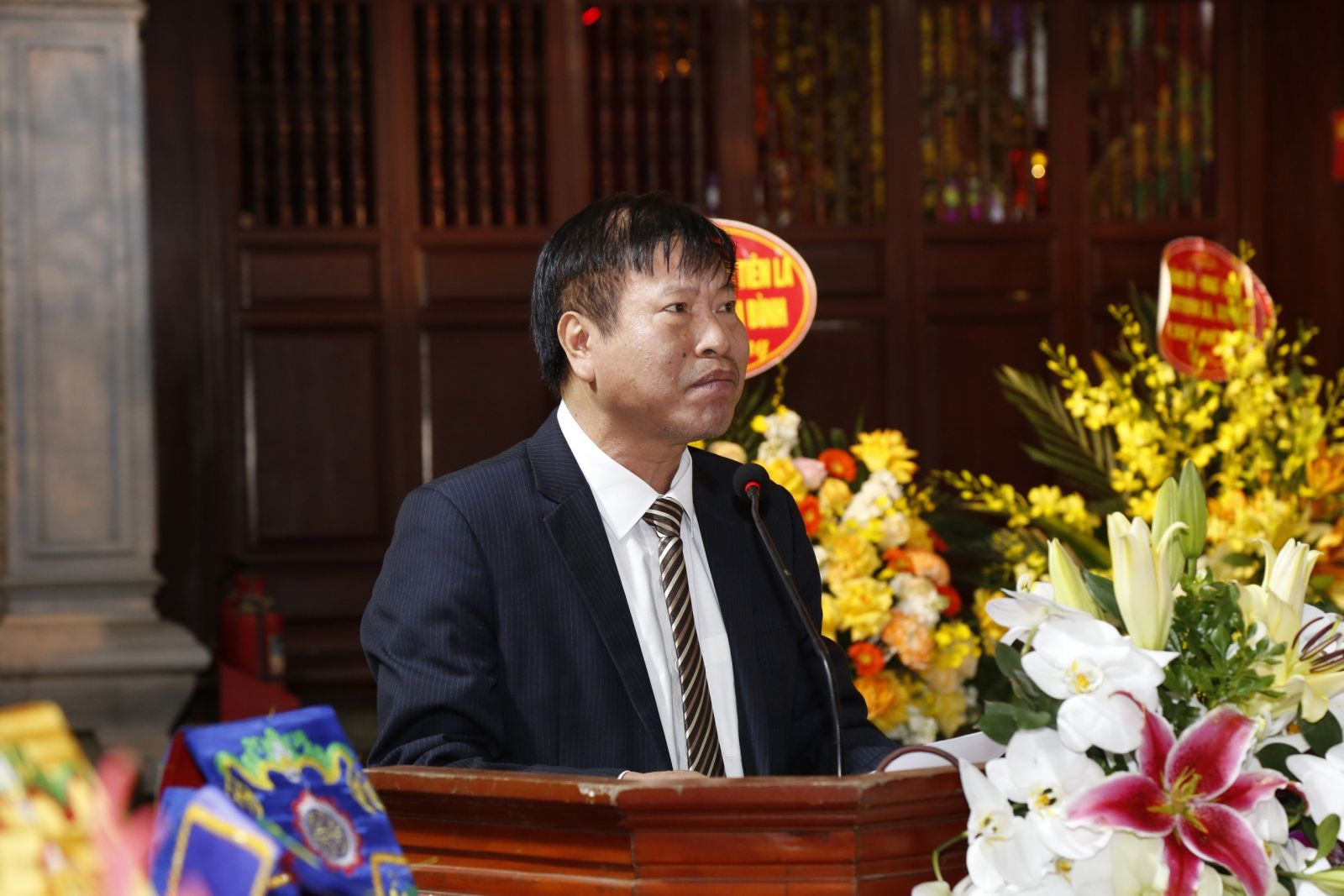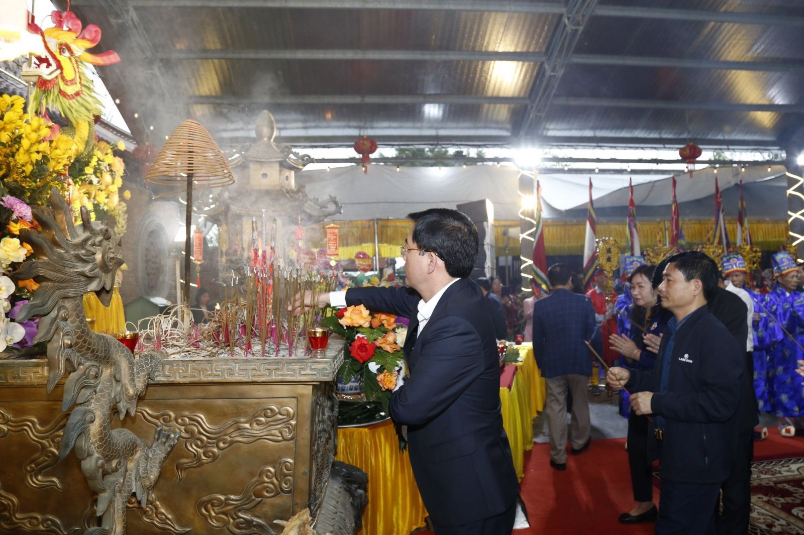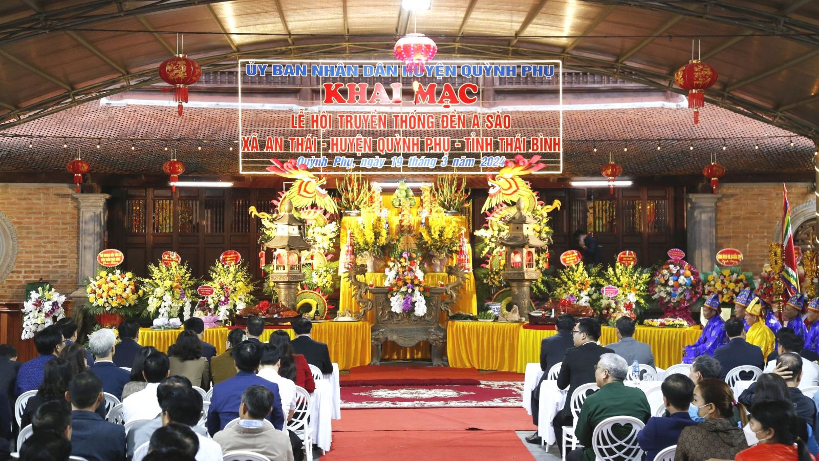 00:00 ngày 19/03/2024 | lượt xem: 499 Khai mạc lễ hội truyền thống đền A Sào năm 2024 Sáng ngày 19/3, tại khu di tích lịch sử văn hóa cấp quốc gia Đình, Đền, Bến Tượng A Sào (xã An Thái, huyện Quỳnh Phụ), UBND huyện Quỳnh Phụ tổ chức khai mạc lễ hội truyền thống đền A Sào năm 2024. Dự khai mạc lễ hội có đồng chí Nguyễn Khắc Thận, Phó Bí thư VV88 casino, Chủ tịch UBND tỉnh; các đồng chí Ủy viên Ban Thường vụ VV88 casino, lãnh đạo các sở, ban, ngành, các huyện, thành phố cùng đông đảo nhân dân và du khách thập phương. Các đại biểu dự lễ khai mạc.Khu di tích lịch sử văn hóa cấp quốc gia Đình, Đền, Bến Tượng A Sào, xã An Thái, huyện Quỳnh Phụ, hay còn gọi là Đệ Nhị sinh từ A Sào - nơi thờ Quốc Công Tiết Chế Hưng Đạo Đại Vương Trần Quốc Tuấn - vị anh hùng có công lớn đóng góp khai ân kiến tạo, sáng lập nên một vương triều hùng cường, thịnh trị trong lịch sử dựng nước và giữ nước của dân tộc ta. Người được nhân dân Việt Nam tôn thờ là Đức Thánh Trần. Khu di tích được xếp vào hạng tứ cố cảnh thời Lý - Trần “Đào Động - Lộng Khê - Tô Đê - A Sào”. Nơi đây xưa là thái ấp của Phụng Càn Vương Trần Liễu, phụ thân của Trần Quốc Tuấn, cũng là nơi gắn liền với nhiều chiến tích trong sự nghiệp quân sự của Hưng Đạo Đại Vương Trần Quốc Tuấn. Đặc biệt, sự kiện voi chiến của Trần Hưng Đạo bị sa lầy bên bờ sông Hóa (nay là bến Tượng) trên đường hành quân tới bến Bạch Đằng giang trong cuộc kháng chiến chống quân xâm lược Nguyên Mông lần thứ ba - 1288 cùng lời thề bất tử “Nếu trận này không thắng giặc Thát ta thề không trở lại bến sông này!” đã đem lại những giá trị lịch sử, văn hóa to lớn cho khu di tích. Năm 2011, khu di tích đã được Bộ Văn hóa, Thể thao và Du lịch cấp bằng di tích lịch sử văn hóa cấp quốc gia. Đến năm 2015, Bộ Văn hóa, Thể thao và Du lịch đã đưa lễ hội truyền thống đền A Sào vào danh mục di sản văn hóa phi vật thể cấp quốc gia, trở thành điểm du lịch tâm linh thu hút đông đảo du khách, góp phần phát triển kinh tế, văn hóa, xã hội địa phương.Lãnh đạo huyện Quỳnh Phụ phát biểu tại buổi khai mạc lễ hội.Tại lễ khai hội, các đại biểu và du khách thập phương đã thưởng thức màn trống hội. Sau nghi thức dâng hương tưởng niệm Quốc Công Tiết Chế Hưng Đạo Đại Vương Trần Quốc Tuấn tại tòa đại bái, đồng chí Phó Bí thư VV88 casino, Chủ tịch UBND tỉnh cùng các đại biểu và quý khách thập phương và nhân dân, các đoàn tế nam quan, nữ quan đã dâng hương tế thánh cầu cho quốc thái dân an, mưa thuận gió hòa, mùa màng tươi tốt và sức khỏe cho mọi người, mọi nhà.Nghi thức dâng hương tưởng niệm Quốc Công Tiết Chế Hưng Đạo Đại Vương Trần Quốc Tuấn tại tòa đại bái.Đồng chí Nguyễn Khắc Thận, Phó Bí thư VV88 casino, Chủ tịch UBND tỉnh dâng hương Quốc Công Tiết Chế Hưng Đạo Đại Vương Trần Quốc Tuấn tại tòa đại bái.Các đại biểu dâng hương Quốc Công Tiết Chế Hưng Đạo Đại Vương Trần Quốc Tuấn tại tòa đại bái.Lễ hội truyền thống đền A Sào năm 2024 diễn ra từ ngày 19/3 – 21/3/2024 (tức mùng 10 – 12/2 năm Giáp Thìn). Ngoài hoạt động tế lễ theo truyền thống còn có các hoạt động văn hóa, trò chơi dân gian như kéo co, thi giã bánh dày... và các hoạt động biểu diễn văn nghệ. Tác giả: T.Đạt