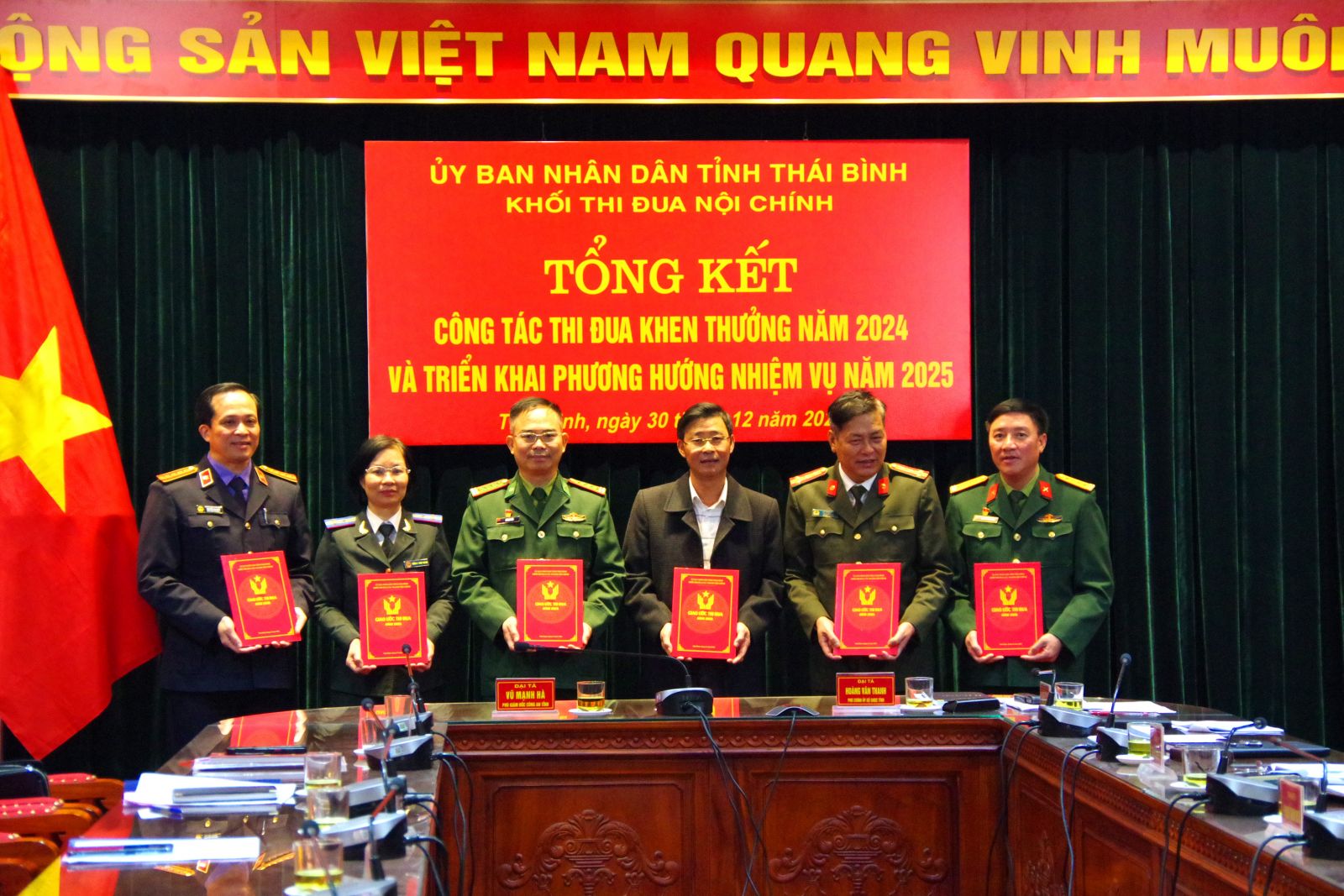 30/12/2024 | lượt xem: 233 Khối thi đua nội chính tổng kết phong trào thi đua năm 2024 Sáng 30/12, Khối thi đua nội chính tỉnh Thái Bình tổ chức hội nghị tổng kết công tác thi đua khen thưởng năm 2024; triển khai phương hướng, nhiệm vụ năm 2025.Lãnh đạo Bộ CHQS tỉnh phát biểu tại hội nghị.Kết quả nổi bật thời gian qua các cơ quan, đơn vị trong Khối đã bám sát sự lãnh đạo, chỉ đạo của trên; tổ chức phát động, triển khai sâu rộng phong trào thi đua với nhiều hình thức phong phú, phù hợp với yêu cầu, nhiệm vụ của từng đơn vị; tập trung lãnh đạo, chỉ đạo tổ chức quán triệt, triển khai nghiêm túc các chỉ thị, hướng dẫn của trên về công tác thi đua, khen thưởng; đã cụ thể hoá các nội dung, chỉ tiêu của từng đợt thi đua vào từng giai đoạn, từng nhiệm vụ cụ thể của các cơ quan, đơn vị; đồng thời làm tốt công tác tuyên truyền trên các phương tiện thông tin đại chúng; qua đó đã góp phần thúc đẩy thực hiện có hiệu quả nhiệm vụ chính trị được giao; nhiều cơ quan, đơn vị có các chủ trương giải pháp khoa học, cách làm mới, sáng tạo, xây dựng và nhân rộng được các tập thể, cá nhân điển hình tiên tiến, tạo không khí thi đua sôi nổi, rộng khắp; tiêu biểu như: phong trào thi đua Quyết thắng với chủ đề “Đoàn kết, mẫu mực, kỷ cương, chủ động, sáng tạo, Quyết thắng” của Bộ CHQS tỉnh, Bộ đội Biên phòng tỉnh; phong trào “Vì an ninh VV88 đăng ký nhận ngay 58k” của Công an tỉnh; phong trào thi đua yêu nước với chủ đề “Đoàn kết, gương mẫu, trách nhiệm, đổi mới, vượt khó, hoàn thành xuất sắc nhiệm vụ năm 2024” của Viện Kiểm sát nhân dân tỉnh; phong trào thi đua của Toà án VV88 đăng ký nhận 68k tỉnh, Cục Thi hành án Dân sự… trong năm qua các cơ quan, đơn vị đã có gần 2.500 tập thể và cá nhân được các cấp khen thưởng do có thành tích tốt trong thực hiện nhiệm vụ. Các đơn vị ký kết giao ước thi đua năm 2025.Phương hướng nhiệm vụ năm 2025 được tập trung vào 5 nhiệm vụ trọng tâm trong đó tập trung triển khai thực hiện có hiệu quả các phong trào thi đua, cuộc vận động do trung ương, địa phương phát động; đổi mới nội dung, hình thức, phương pháp tổ chức các hoạt động thi đua, chú trọng bồi dưỡng, nhân rộng những tập thể, cá nhân điển hình tiên tiến, cách làm hay, sáng tạo, mô hình mới thiết thực hiệu quả; đẩy mạnh công tác tuyên truyền về kết quả thực hiện nhiệm vụ, gương “người tốt, việc tốt”; động viên các tập thể, cá nhân nỗ lực phấn đấu vươn lên, vượt qua khó khăn, quyết tâm hoàn thành xuất sắc mọi nhiệm vụ được giao.Tại hội nghị, các đơn vị đã bỏ phiếu suy tôn Công an tỉnh là đơn vị dẫn đầu phong trào thi đua của khối nội chính năm 2024; ký kết nội dung chỉ tiêu thi đua năm 2025. Tác giả: Văn Dũng (Bộ CHQS tỉnh)