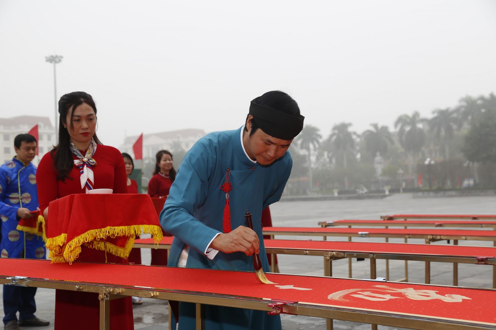 00:00 ngày 01/02/2024 | lượt xem: 390 Tái hiện không gian văn hóa truyền thống qua Phố ông Đồ và góc chợ quê tại Bảo tàng Thái Bình Sáng 1/2, Bảo tàng Thái Bình phối hợp với Công ty đầu tư Phát triển Văn hóa Việt khai mạc không gian Phố ông đồ và góc chợ quê tại khuôn viên Bảo tàng (Quảng trường 14/10, thành phố Thái Bình). Phố ông đồ và góc chợ quê tại Bảo tàng tỉnh diễn ra từ ngày 1/2 đến đêm 9/2/2024 (ngày 22 đến đêm 30 tháng Chạp năm Giáp Thìn).Thành viên Câu lạc bộ Hán nôm và Thư pháp trình diễn nghệ thuật thư pháp tại lễ khai mạc.Ở Phố ông đồ, người dân sẽ được giao lưu, xin chữ thư pháp từ thành viên Câu lạc bộ Hán nôm và Thư pháp tỉnh.Không gian chợ quê, người tham quan được hòa mình vào không gian cổ truyền, được thưởng thức các món ăn dân dã và mua sắm các loại rau, quả, bánh, đồ khô cho ngày tết. Không gian phố ông đồ và góc chợ quê góp phần giới thiệu nghệ thuật thư pháp cũng như tái hiện khung cảnh một góc chợ quê xưa - những nét văn hóa đẹp trong truyền thống của người Việt. Thông qua các hoạt động nhằm nâng cao nhận thức, lòng tự hào và trách nhiệm của các tầng lớp nhân dân đối với việc bảo tồn và phát huy giá trị văn hóa truyền thống của tỉnh Thái Bình. Tác giả: T.Đạt