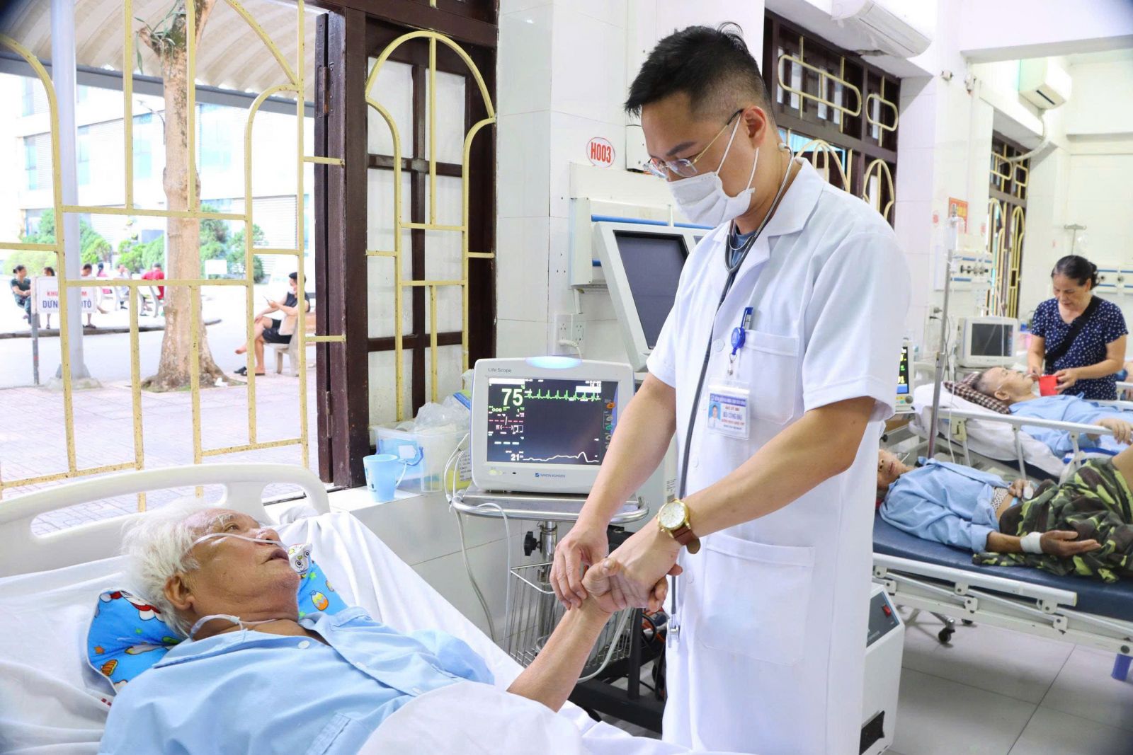 25/06/2025 | lượt xem: 719 Thái Bình: Can thiệp tim mạch giành lại sự sống cho bệnh nhân 83 tuổi Trung tâm Tim mạch - Bệnh viện Đa khoa tỉnh Thái Bình vừa can thiệp tim mạch giành lại sự sống cho bệnh nhân 83 tuổi mắc bệnh nền phổi mãn tính sau 3 lần ngừng tim.Các bác sĩ Trung tâm Tim mạch thực hiện phẫu thuật can thiệp tim mạch giành lại sự sống cho bệnh nhân 83 tuổi mắc bệnh nền phổi mãn tính sau 3 lần ngừng tim.Đêm ngày 24/6, bệnh nhân Đoàn Văn Tạc, 83 tuổi, xã Minh Hoà (Hưng Hà) được người nhà đưa đến Trung tâm Tim mạch - Bệnh viện Đa khoa tỉnh Thái Bình trong tình trạng đau ngực dữ dội, khó thở, mệt lả, tím tái... Ngay sau tiếp nhận ca bệnh, các bác sĩ xác định đây là một trường hợp nhồi máu cơ tim cấp, chỉ định can thiệp mạch vành khẩn cấp. Tuy nhiên, trong lúc ê kíp đang chuẩn bị dụng cụ để can thiệp, bệnh nhân đột ngột ngừng tim, thở ngáp yếu ớt, mạch huyết áp không đo được – một tình trạng nguy kịch có thể cướp đi tính mạng chỉ trong tích tắc.Ê kíp can thiệp lập tức ép tim ngoài lồng ngực, bóp bóng, sốc điện, truyền vận mạch, đặt máy tạo nhịp tạm thời và chụp mạch vành cấp cứu. “Chúng tôi vừa cấp cứu ngừng tuần hoàn, vừa phải chụp mạch vành, những giây phút căng thẳng để giành lại sự sống cho bệnh nhân, rất nhanh chóng. Chúng tôi đã xác định tắc hoàn toàn động mạch vành phải là nguyên nhân trực tiếp dẫn tới ngừng tim. Một stent được đưa vào và mở chỗ tắc ngay lập tức. Trong quá trình đặt stent bệnh nhân thêm 2 lần ngừng tim. Sau 10 phút tập trung cao độ, bằng mọi biện pháp quyết liệt, sự phối hợp nhịp nhàng, chuyên nghiệp của cả ê kíp, tim bệnh nhân đập trở lại. Nhìn hình ảnh điện tim bệnh nhân phục hồi, cảm xúc khi ấy rất khó diễn tả...”, bác sĩ CKI Bùi Công Hải người trực tiếp can thiệp cho bệnh nhân chia sẻ.Bác sĩ thăm hỏi, trò chuyện với bệnh nhân Đoàn Văn Tạc, 83 tuổi, xã Minh Hoà (Hưng Hà) sau ca phẫu thuật thành công.Sau can thiệp, huyết động của bệnh nhân dần ổn định, các chỉ số sinh tồn cải thiện rõ rệt. Bệnh nhân qua cơn nguy kịch trong niềm vui vỡ oà của các bác sĩ và gia đình bệnh nhân. “15 năm trong nghề, tôi không thể quên những khoảnh khắc như thế. Mỗi ca cấp cứu thành công lại khiến mình yêu nghề hơn, cảm nhận rõ ràng ý nghĩa của việc giữ lại một sự sống đang dần rời xa của người bệnh và biết ơn tinh thần của đồng đội”, bác sĩ Hải xúc động cho biết.Anh Đoàn Quốc Bảo, con trai bệnh nhân xúc động: “Chúng tôi không nghĩ bố còn cơ hội trở về vì bố tôi tuổi đã cao lại mắc bệnh nặng. Khi ông ngừng tim 3 lần liên tục, chúng tôi gần như gục ngã. Nhưng rồi một lát sau lại nghe tin tim đã đập lại, không thể tin nổi. Gia đình tôi biết ơn vô cùng các y, bác sĩ, điều dưỡng của Trung tâm Tim mạch - Bệnh viện Đa khoa Tỉnh Thái Bình đã cứu sống bố tôi".Hiện bệnh nhân đang được theo dõi, điều trị tại phòng hồi sức Tim Mạch của Trung tâm Tim mạch. Bệnh nhân tỉnh táo, tiếp xúc, nói chuyện tốt, chức năng tim cải thiện nhanh sau can thiệp. Ca bệnh là minh chứng rõ ràng cho thấy, với những bệnh lý tim mạch cấp tính, đặc biệt là nhồi máu cơ tim, thời gian là cơ tim – thời gian là sự sống. Việc xử trí cấp cứu nhanh chóng, chính xác, phối hợp nhuần nhuyễn giữa các bộ phận là yếu tố sống còn để cứu bệnh nhân khỏi ranh giới tử vong.Không chỉ là kỹ thuật, đó còn là bản lĩnh, là sự tỉnh táo trong những giây phút căng thẳng nhất khi mà chỉ một chậm trễ nhỏ có thể khiến sự sống tuột khỏi tầm tay. “Chúng tôi đã chiến đấu hết mình và chiến thắng lớn nhất là bệnh nhân có thể trở về với gia đình, tiếp tục sống thêm những ngày đáng quý...”, bác sĩ CKI Bùi Công Hải khép lại câu chuyện cùng tình yêu nghề bằng một nụ cười nhẹ sau một ngày vất vả với 6 ca nhồi máu cơ tim được can thiệp tim mạch thành công. Tác giả: Hoàng Thía