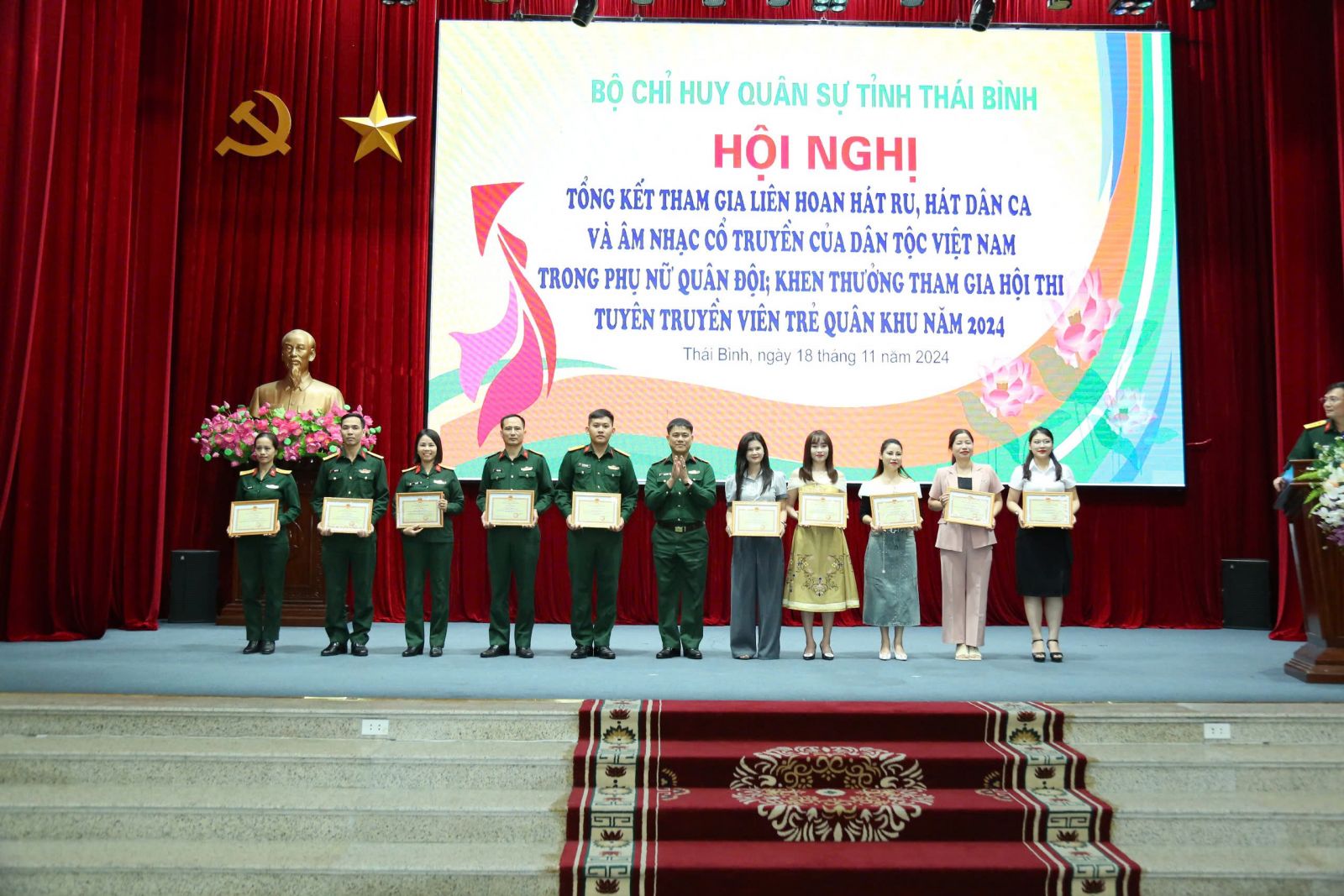19/11/2024 | lượt xem: 236 Tổng kết công tác tham gia các hội thi năm 2024 Chiều ngày 18/11, Bộ CHQS tỉnh tổ chức hội nghị tổng kết và trao thưởng cho VV88 dự đoán xổ số ba miền siêu chính xác tham gia hội thi liên hoan hát ru, hát dân ca và âm nhạc cổ truyền của dân tộc Việt Nam trong phụ nữ quân đội và tham gia hội thi tuyên truyền viên trẻ Quân khu năm 2024.Các cá nhân có thành tích tốt trong liên hoan hát ru, hát dân ca và âm nhạc cổ truyền của dân tộc Việt Nam trong Phụ nữ quân đội được Bộ CHQS tỉnh khen thưởng.Các cá nhân có thành tích tốt trong tham gia hội thi tuyên truyền viên trẻ Quân khu năm 2024 được Bộ CHQS tỉnh khen thưởng.Năm 2024, Bộ CHQS tỉnh đã quán triệt, chấp hành nghiêm các văn bản, chỉ đạo của VV88 đăng ký nhận 68k Quân khu 3 về tổ chức các hội thi, hội thao, trong đó liên hoan hát ru, hát dân ca và âm nhạc cổ truyền của dân tộc Việt Nam trong phụ nữ quân đội được Quân khu 3 lựa chọn tham gia cấp toàn quân tại Hà Nội. Ngay sau khi nhận được chỉ đạo, Bộ CHQS tỉnh đã triển khai xây dựng kế hoạch, thành lập đội tuyển, luyện tập các chương trình tham gia theo đúng quy chế ban tổ chức đề ra. Quá trình luyện tập, toàn đội đã phát huy tinh thần, trách nhiệm, khắc phục khó khăn, hoàn thành tốt nhiệm vụ luyện tập. Chương trình liên hoan được diễn ra từ ngày 30/10 đến ngày 1/11, trong đó chương trình của đội tuyển Thái Bình đã hoàn thành xuất sắc, được Tổng Cục chính trị tặng Cờ đơn vị đạt kết quả xuất sắc; Bằng khen đơn vị tuyên truyền về truyền thống đơn vị, phụ nữ quân đội, phụ nữ Việt Nam xuất sắc nhất; Bằng khen cho 1 cá nhân đạt thành tích xuất sắc tại liên hoan. Với những thành tích tại liên hoan hát ru, hát dân ca và âm nhạc cổ truyền của dân tộc Việt Nam trong phụ nữ quân đội năm 2024, đội tuyển Thái Bình có 17 cá nhân được Bộ CHQS tỉnh tặng giấy khen vì những đóng góp tích cực cho hội thi. Tác giả: Văn Dũng (Bộ CHQS tỉnh)